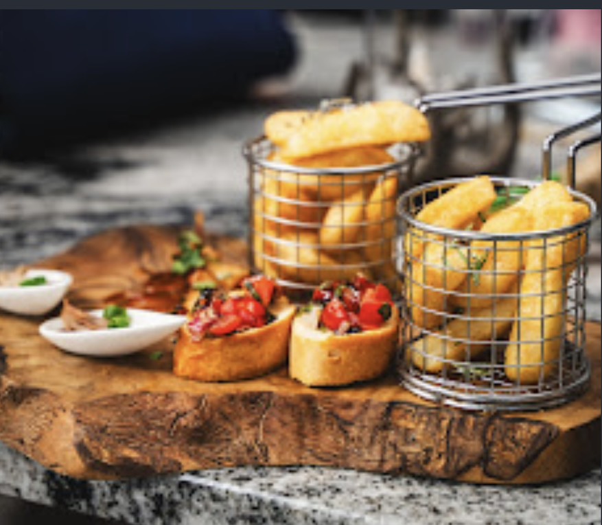 Mini bruschetta with sun-dried tomatoes & fresh basil oil (v)